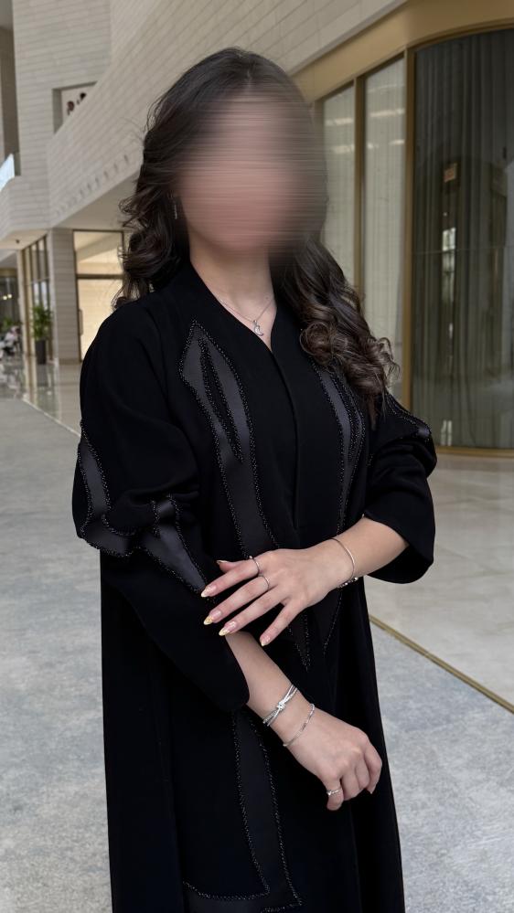 إطلالة فاخرة تفيض بالأنوثة، عباية ليلى صُممت باللون الأسود الملكي مع نقوش لامعة انسيابية تمنحك حضورًا ملفتًا وأنيقًا.