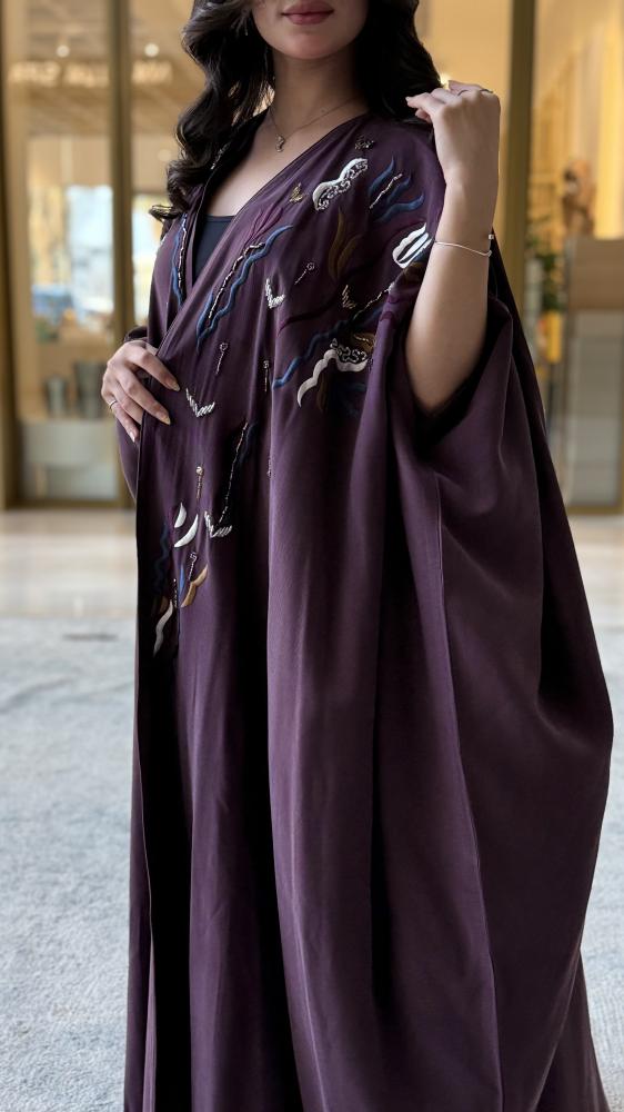 اكتشفي الأناقة الكامنة في البساطة مع عباية ميرا، المصممة بلون بنفسجي ملكي يوحي بالفخامة والرقي. تطريزات فنية مستوحاة من عناصر الطبيعة، تنساب بخيوطها المتداخلة لتمنحك إطلالة تنبض بالتميّز والأنوثة.