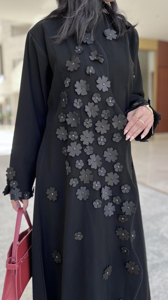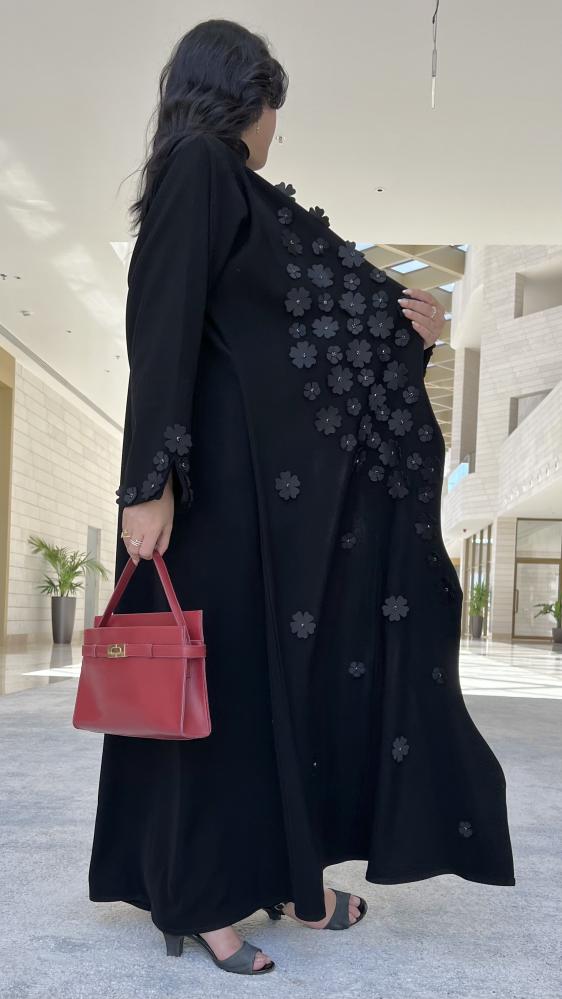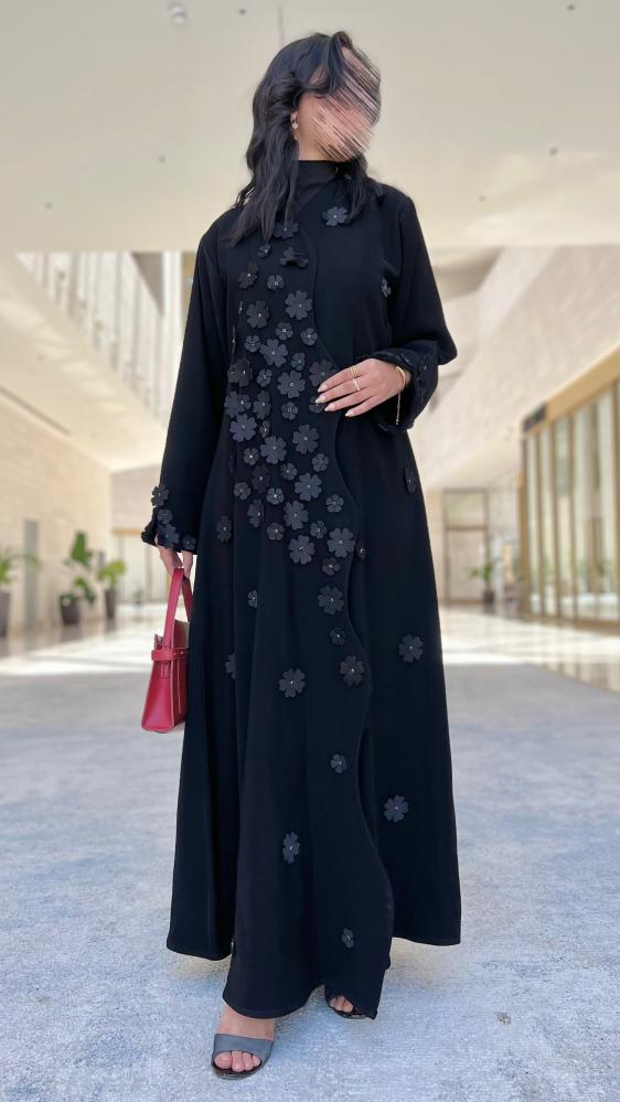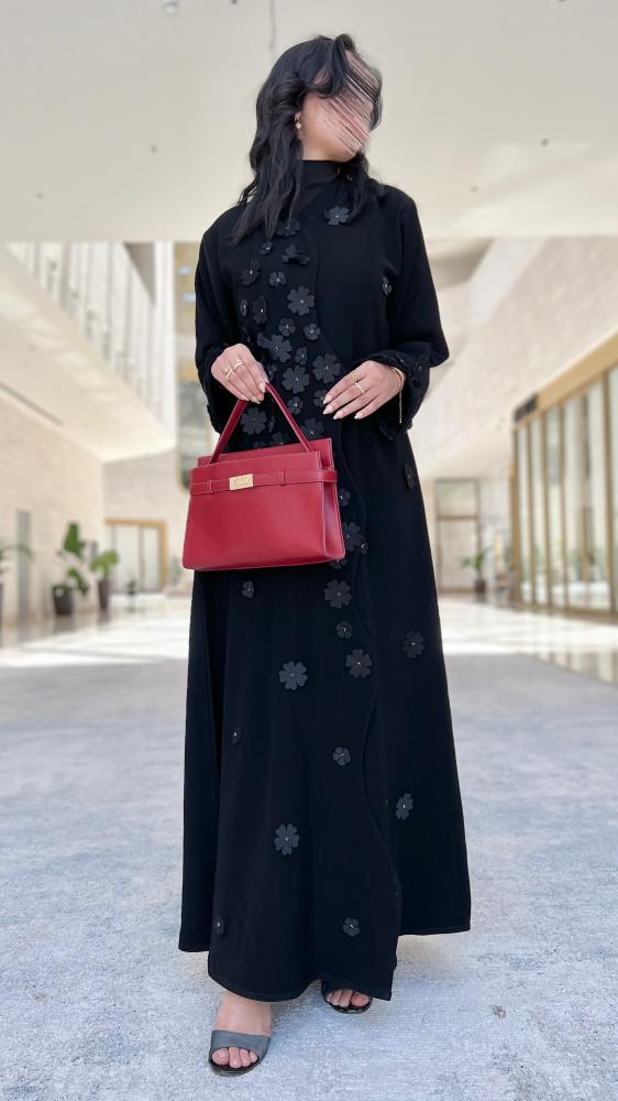 تألقي بأناقة لا تضاهى مع عباية رندا، التي تمزج بين الرقي والنعومة بتصميمها العصري والتفاصيل الدقيقة. تأتي العباية بلون أسود كلاسيكي مع أكمام مزخرفة بالدانتيل الأخضر، لتمنحك إطلالة فاخرة وجذابة في كل مناسبة.