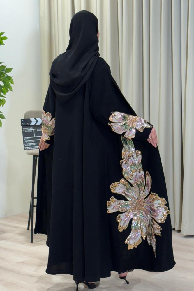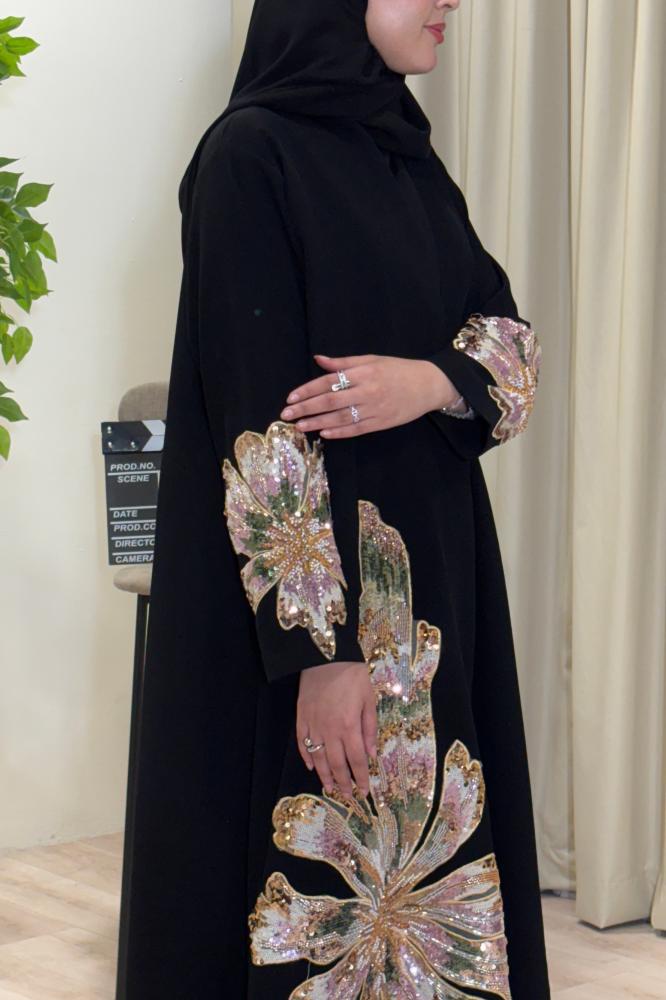 - عباية مطرزة بتفاصيل دقيقة تمنحك حضورًا مهيبًا وأناقة ملفتة.