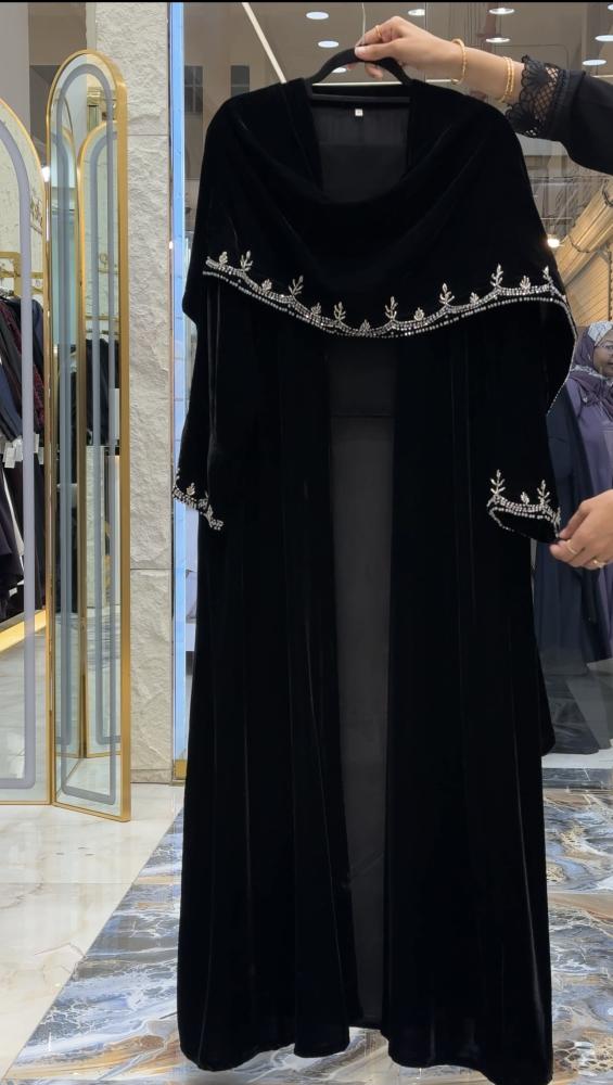 لأن التميز يبدأ من أول نظرة… عباية غدي تجي بتصميم فخم من مخمل فاخر ناعم الملمس يضيف لمعة جذابة وأناقة راقية.