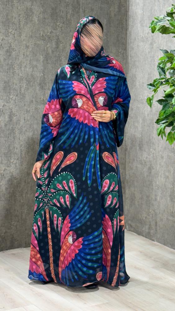 استمتعي بإطلالة مليئة بالحياة مع عبايه سفر ملونه بتصميم فني وجميل حيث تتميز بالألوان المشرقة والتفاصيل اللامعة التي تضيف لمسة من الحيوية والتميز لأي مكان تذهبين اليه.