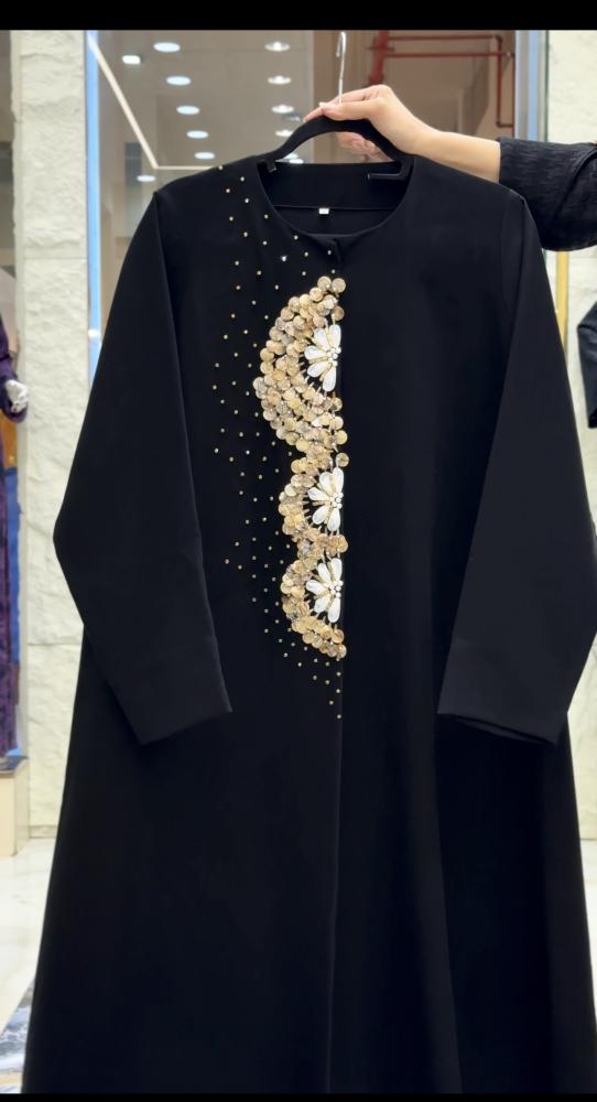 - اللون: أسود مع تطريز زهري ذهبي وأبيض